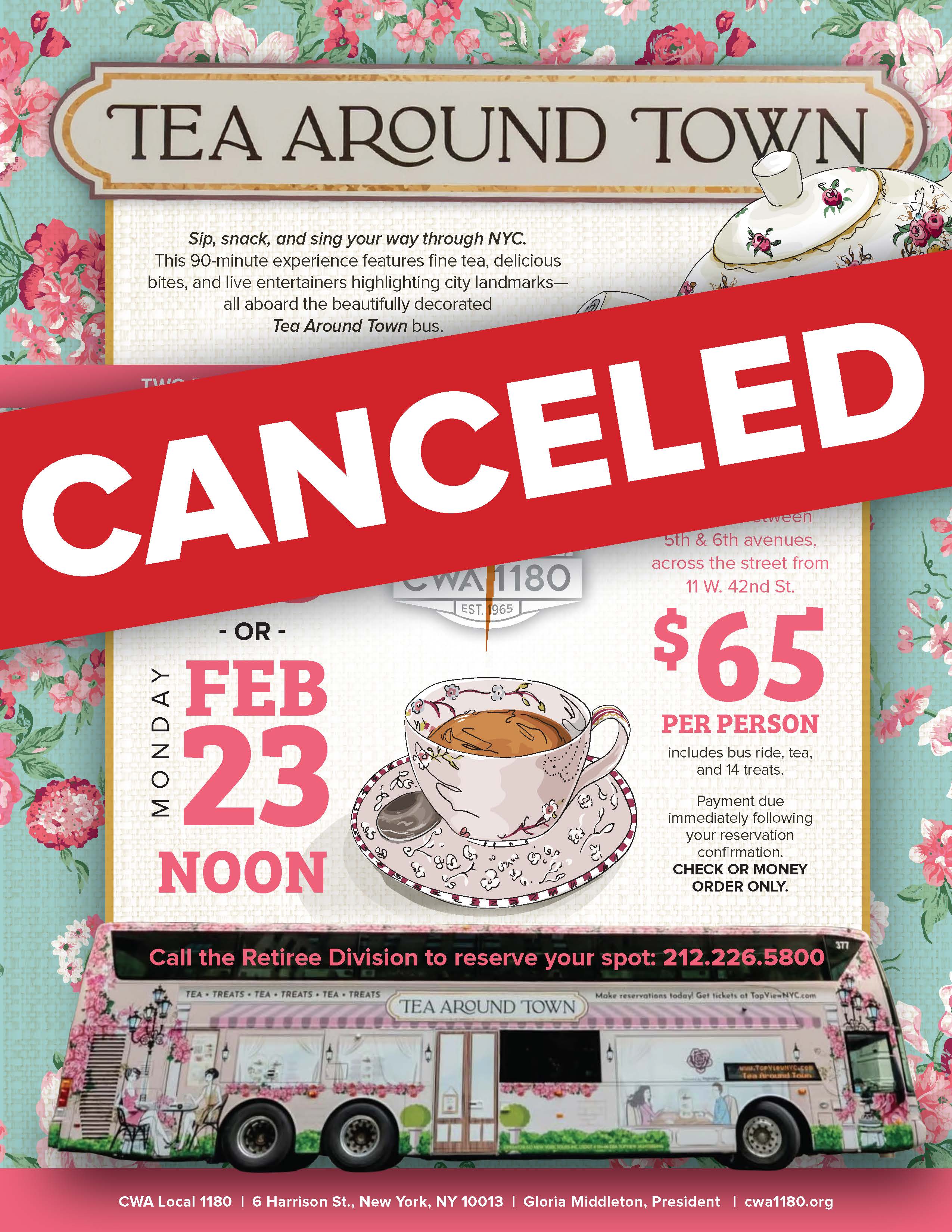 Tea Around Town $65/person | MEET at 42nd St. between 5th & 6th avenues, across the street from 11 W. 42nd St. Call the Retiree Division to reserve your spot today: 212.226.5800 | |