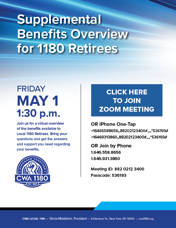 Call the Retiree Division to reserve your spot today: 212.226.5800 |